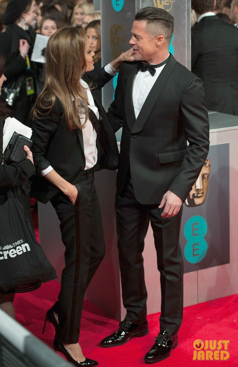 Diện áo sơ mi với vest đơn giản nhưng thanh lịch, Angelina Jolie thu hút mọi sự chú ý khi xuất hiện cùng vị hôn phu Brad Pitt.