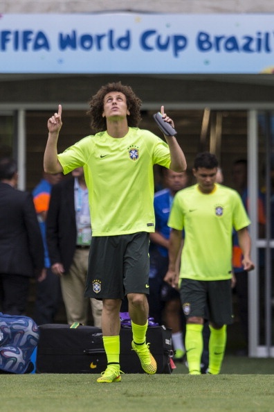 | Trung vệ David Luiz cầu nguyện khi bước ra sân tập chuẩn bị cho trận gặp Mexico. |
