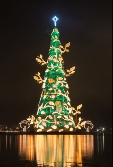 Người ta sử dụng 3 triệu bóng đèn để trang trí cho cây thông Noel, giúp nó tạo ra màn trình diễn ánh sáng độc đáo trên mặt nước. Ảnh: CNN.