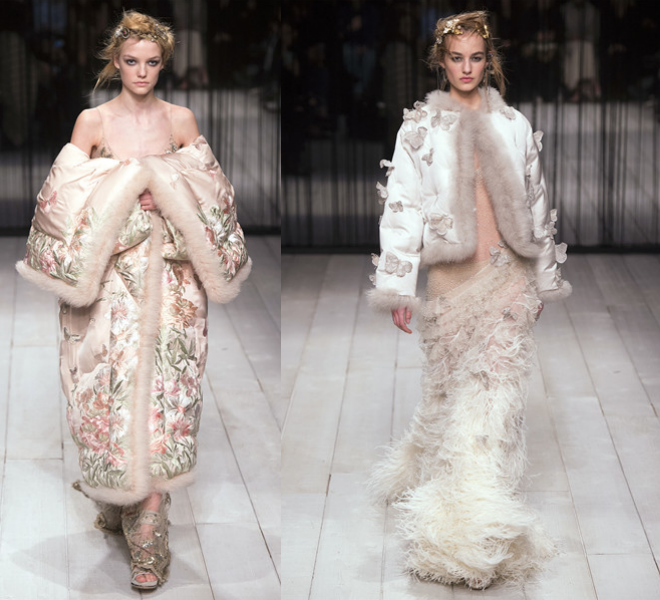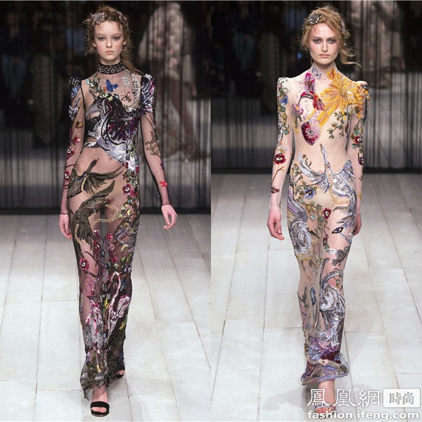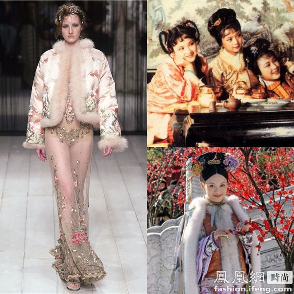 Tối 22/2, thương hiệu Alexander McQueen tổ chức buổi giới thiệu bộ sưu tập trang phục Thu đông 2016. Đậm chất nữ tính và quyến rũ là những gì người ta miêu tả. Tuy nhiên, hãng tin Phượng Hoàng cho rằng không ít mẫu áo khoác đã lấy ý tưởng từ phim cổ trang Trung Quốc. Trong tấm ảnh so sánh này có thể thấy, từ chất liệu đến hoa văn, mẫu trang phục gần như y chang Hồng lâu mộng (ảnh trên) trong bản 1987 hoặc Chân Hoàn truyện.