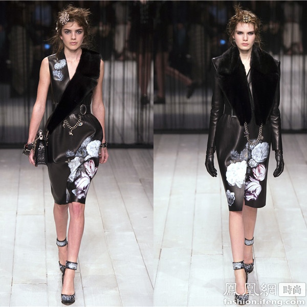 | Một số hình ảnh trong bộ sưu tập Thu đông của thương hiệu Alexander McQueen. Các thiết kế năm nay của hãng chuộng mẫu váy tông đen, họa tiết hoa phối với trang phục da. |