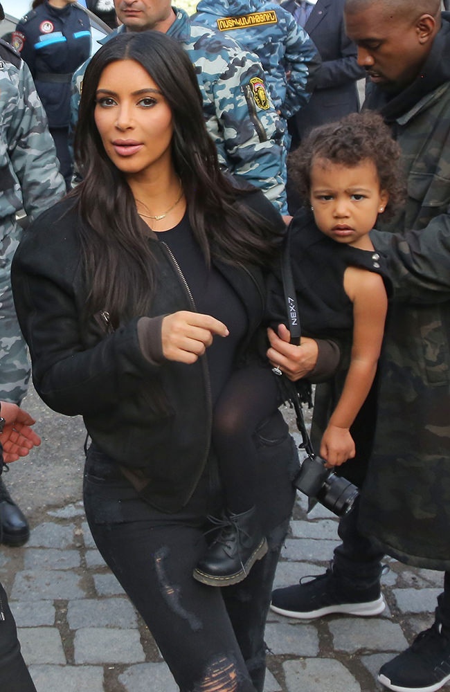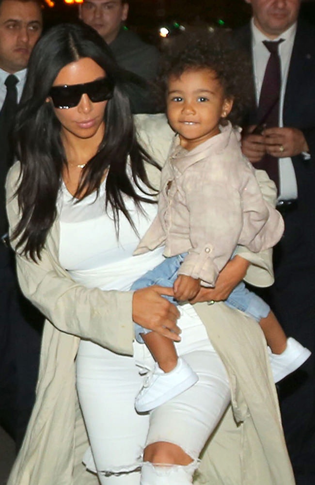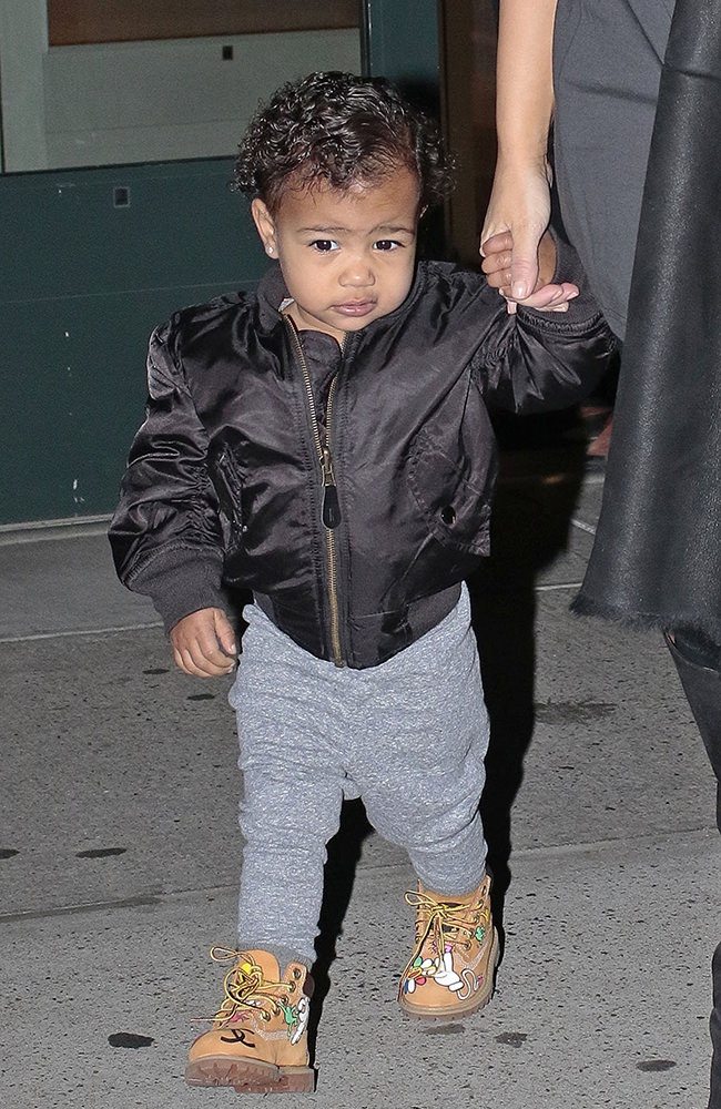 Cũng đôi bốt Timberland này trong một phiên bản nơ trắng được North West sử dụng khi đi dự tiệc cùng mẹ Kim.