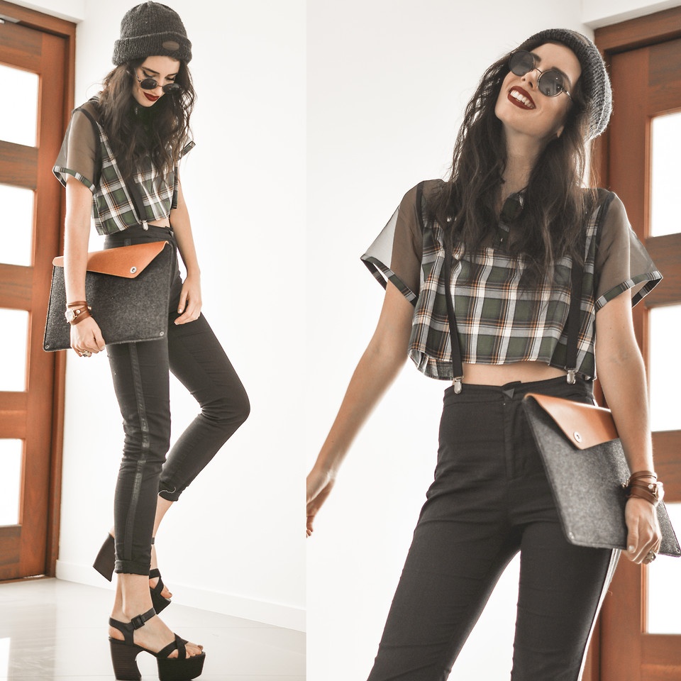 | Áo crop top với họa tiết kẻ rất được ưa thích khi mix kèm quần tregging. |