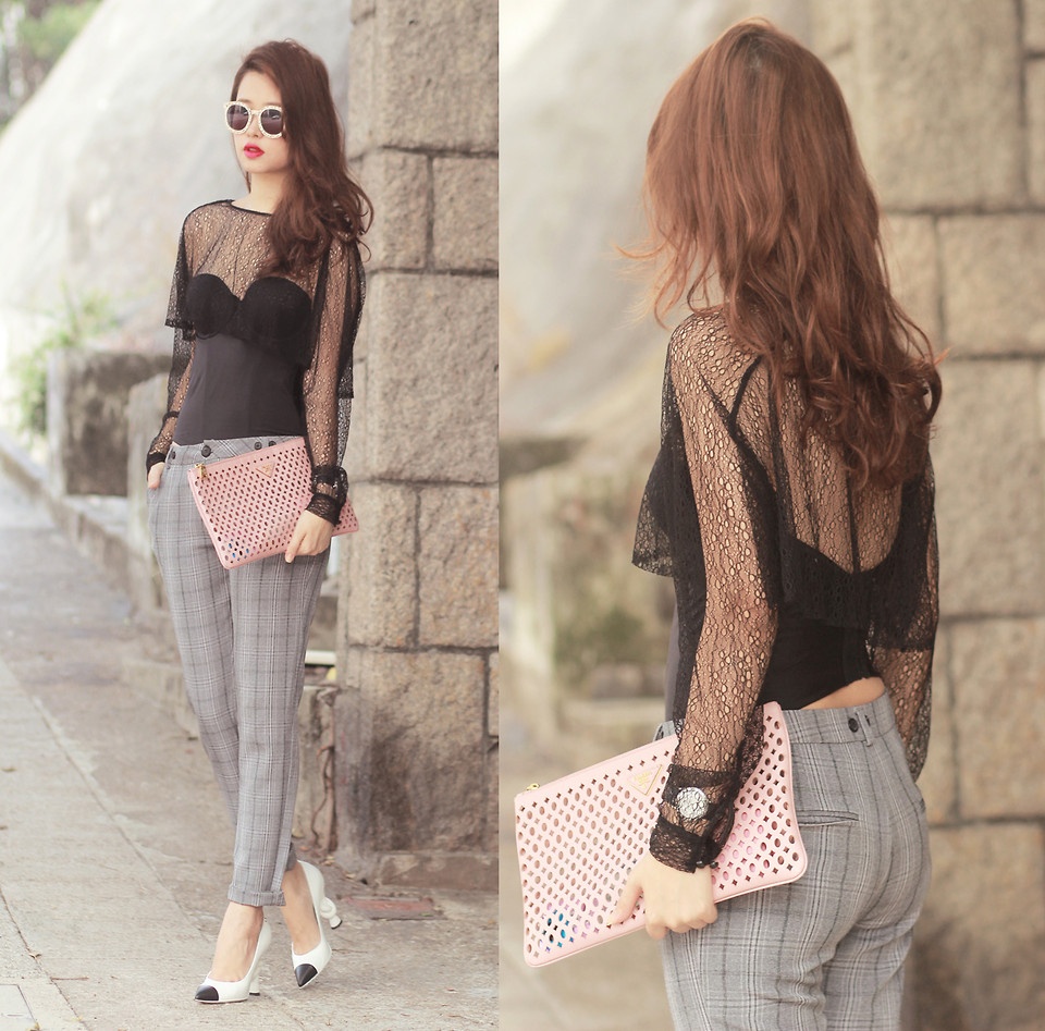 | Sang trọng khi dự tiệc với mẫu áo voan mix kèm quần âu kẻ xắn gấu điệu đà. |