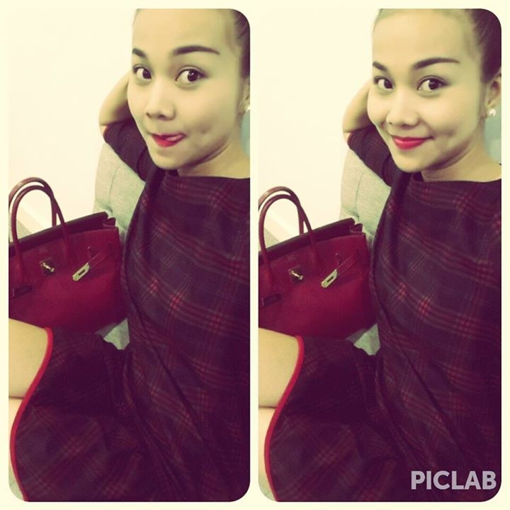 | Người đẹp khoe vẻ duyên dáng với đầm liền kẻ carô tông đỏ sẫm. |