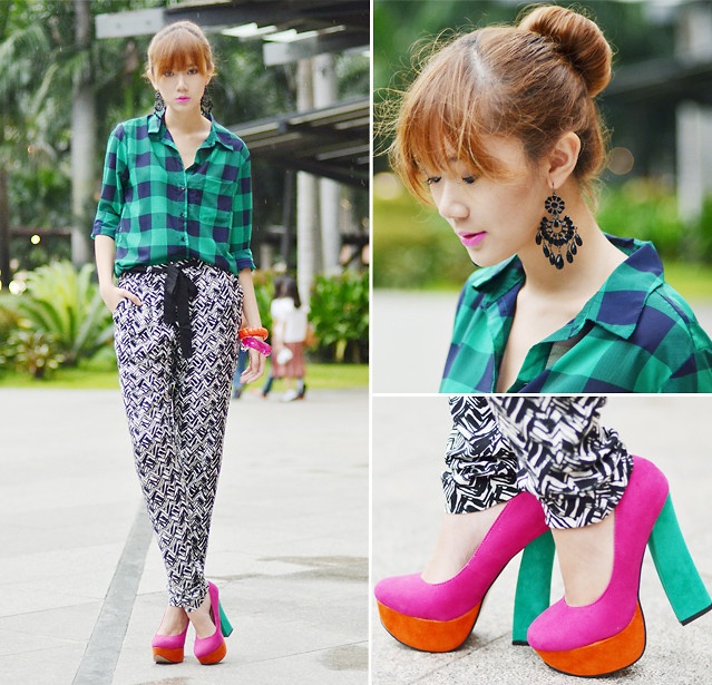 | Hoặc hãy tự tin khoe vẻ cá tính với quần baggy họa tiết và sơ mi kẻ |