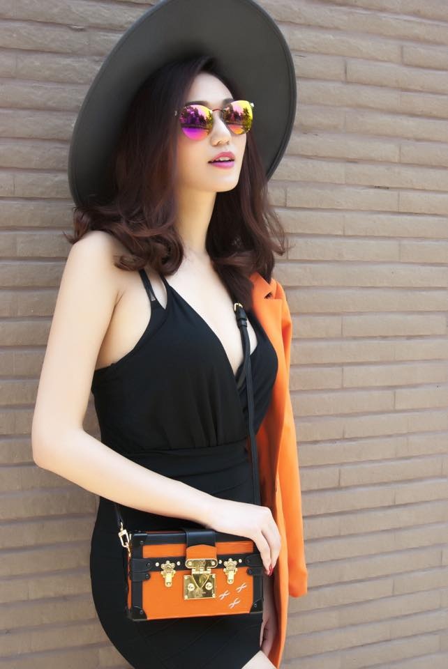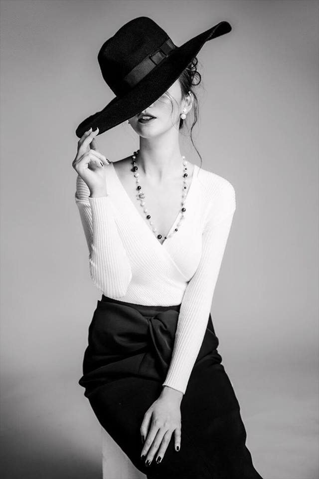 | Hình ảnh Khánh My trong một bộ ảnh quyến rũ với mẫu mũ rộng vành fedora. |