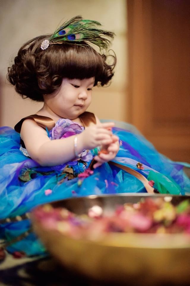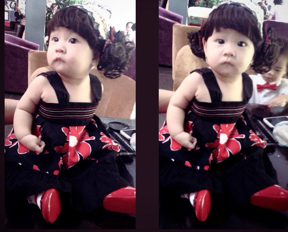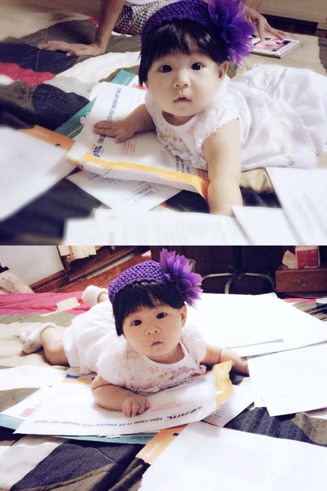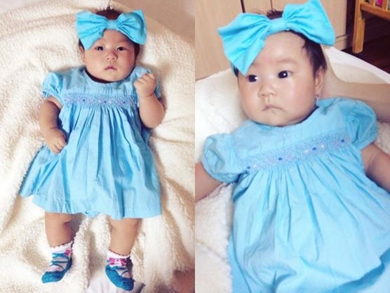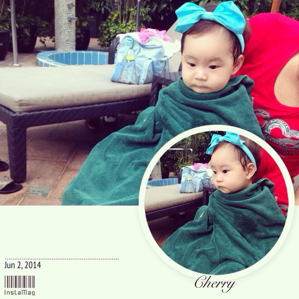 Khi được vài tháng tuổi, Cherry đã tỏ ra khá sành mốt khi diện váy và phụ kiện ton-sur-ton. Nơ cài tóc là món phụ kiện ''bất ly thân'' của cô nhóc còn lơ thơ tóc tơ.