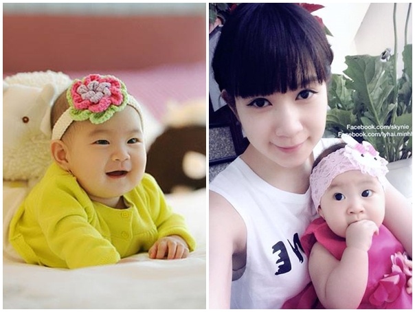 | Nhờ gu thẩm mỹ và sự chu đáo của mẹ, Cherry được đánh giá là nhóc tỳ sành điệu và kiểu cách nhất showbiz. Khi chụp ảnh cùng mẹ, Cherry đeo chiếc băng-đô hoa cúc cùng tông với nơ váy. |