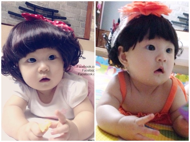 Phụ kiện băng-đô hoa gắn liền với tiểu công chúa trong suốt một năm qua. Trong ảnh, trông Cherry đáng yêu và dễ thương hơn nhờ phụ kiện cài tóc len đa dạng về màu sắc.