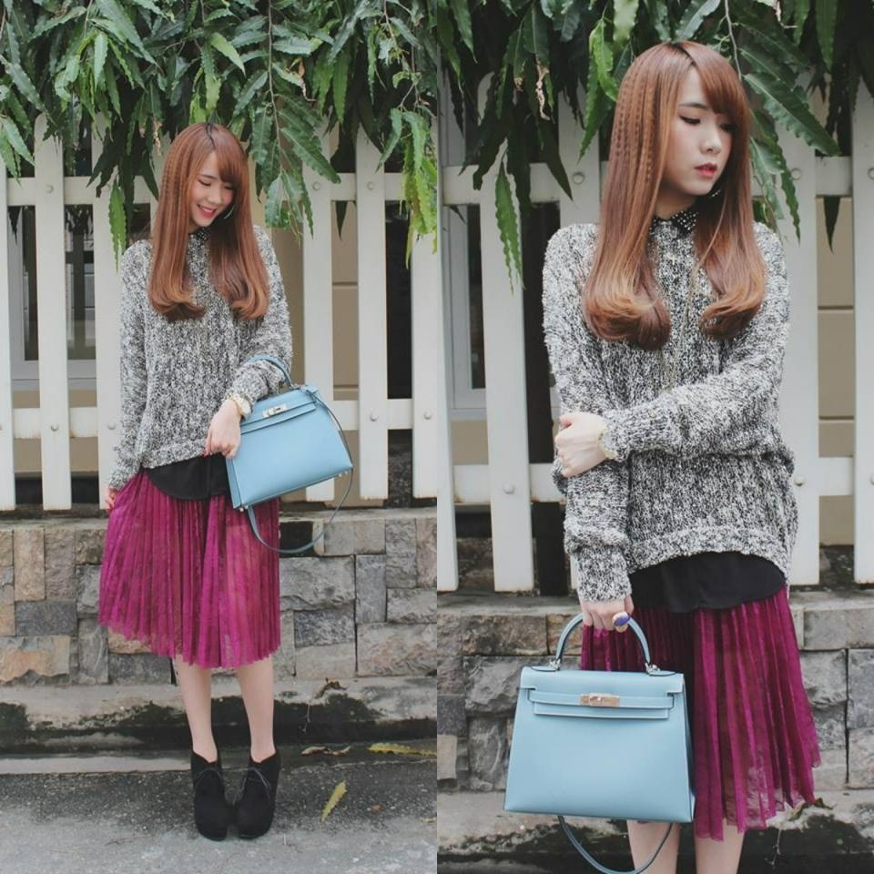 Thế mạnh mix màu ton sur ton được cô phát huy triệt để.
