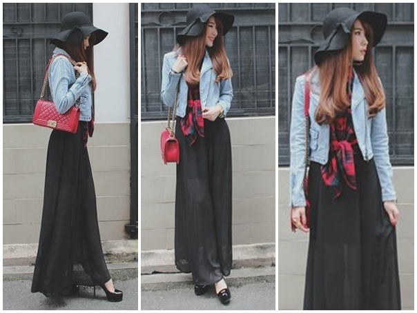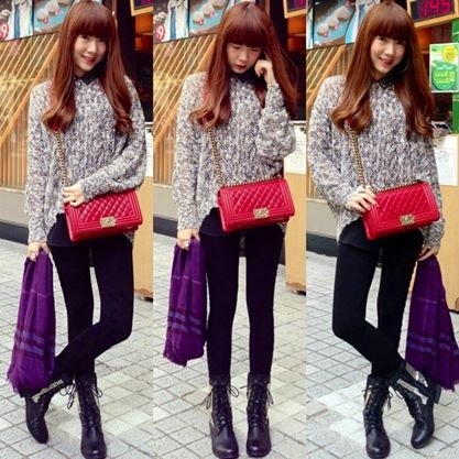 Tông màu đỏ đen kết hợp ăn ý để mùa đông thêm ấm áp.