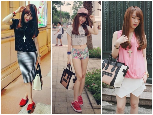 Túi xách của Celine cũng nằm trong list yêu thích của Chris Phan. Trong ảnh là kiểu túi được cô ''cưng chiều'' mix cùng nhiều phong cách khác nhau. Mẫu túi được mua trong chuyến du lịch tại Singapore.