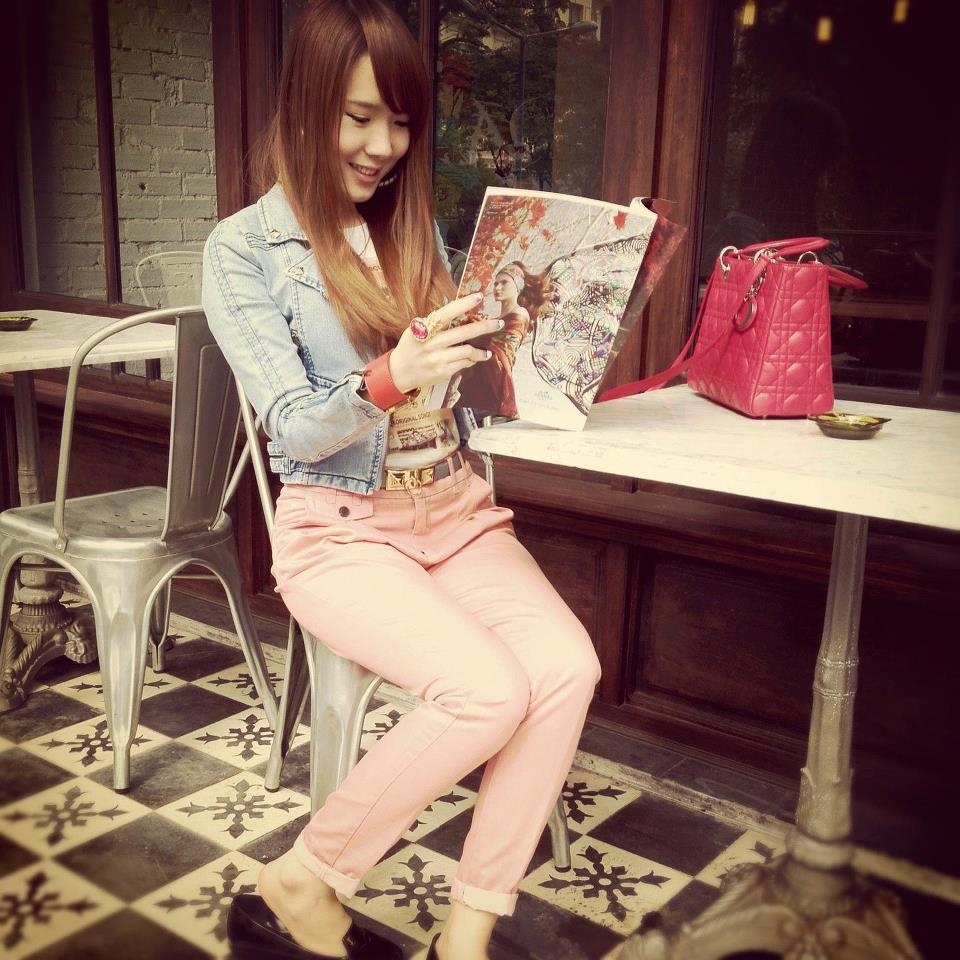 Chris có lợi thế dùng màu dịu ngọt, mix cùng phụ kiện lạ mắt.