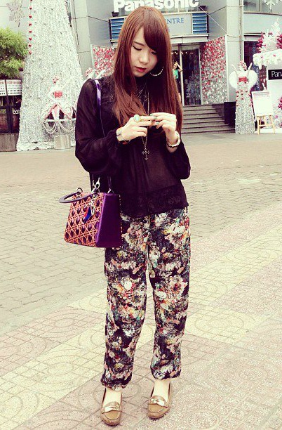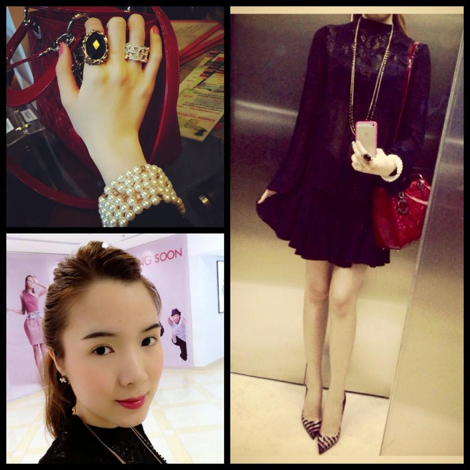 Ở dịp khác, túi Dior đi kèm trang phục hiện đại. Các tông màu luôn được nữ chủ nhân phối rất ngọt mắt.