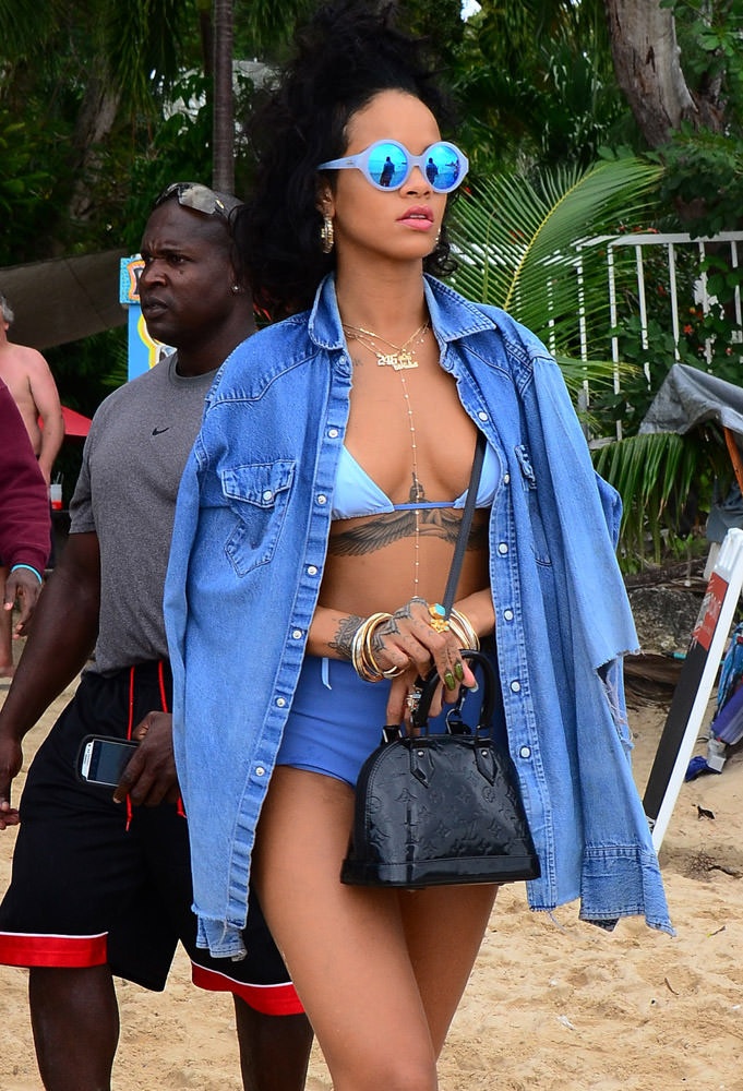 | Túi Alba BB của Louis Vuitton được Riahanna sử dụng khi đi biển có giá 1.820 đôla (xấp xỉ 38,5 triệu). |