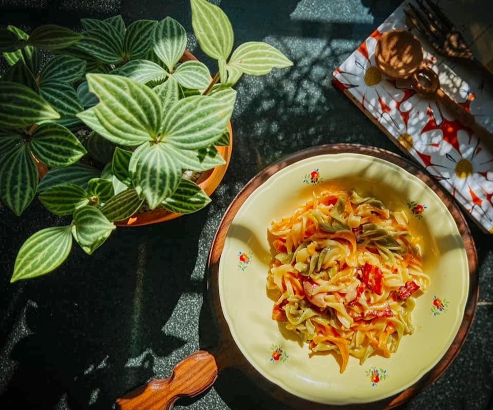 Điểm nhấn của món là sợi nui làm từ các loại củ quả nên không béo và có ít tinh bột.