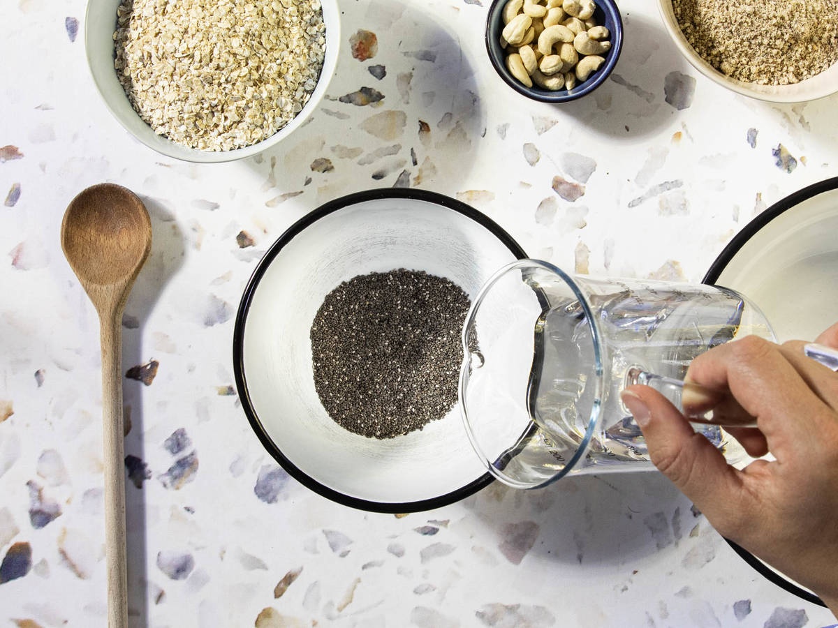 - Trộn hạt chia với nước và để yên trong 10 phút.