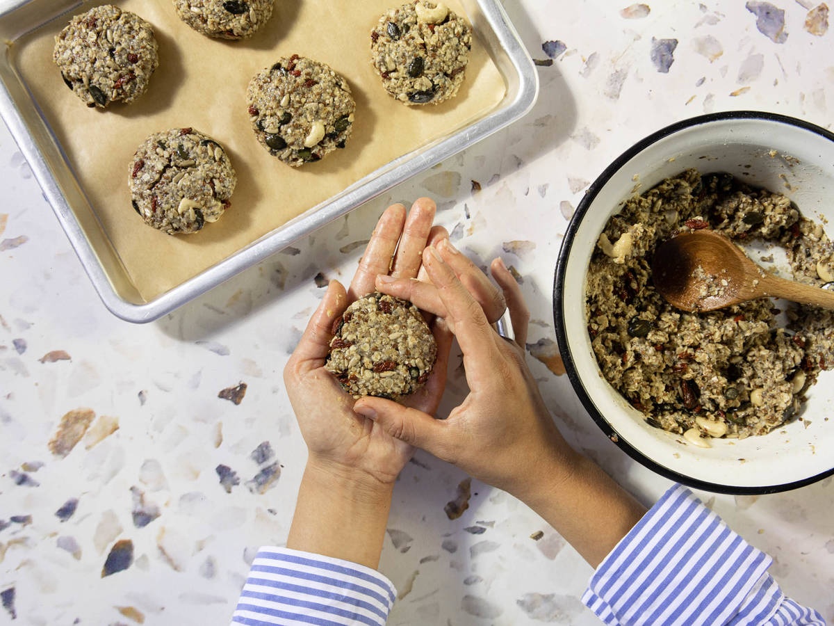 - Chia bột thành từng phần bánh quy rồi đặt lên khay nướng có lót giấy nến.