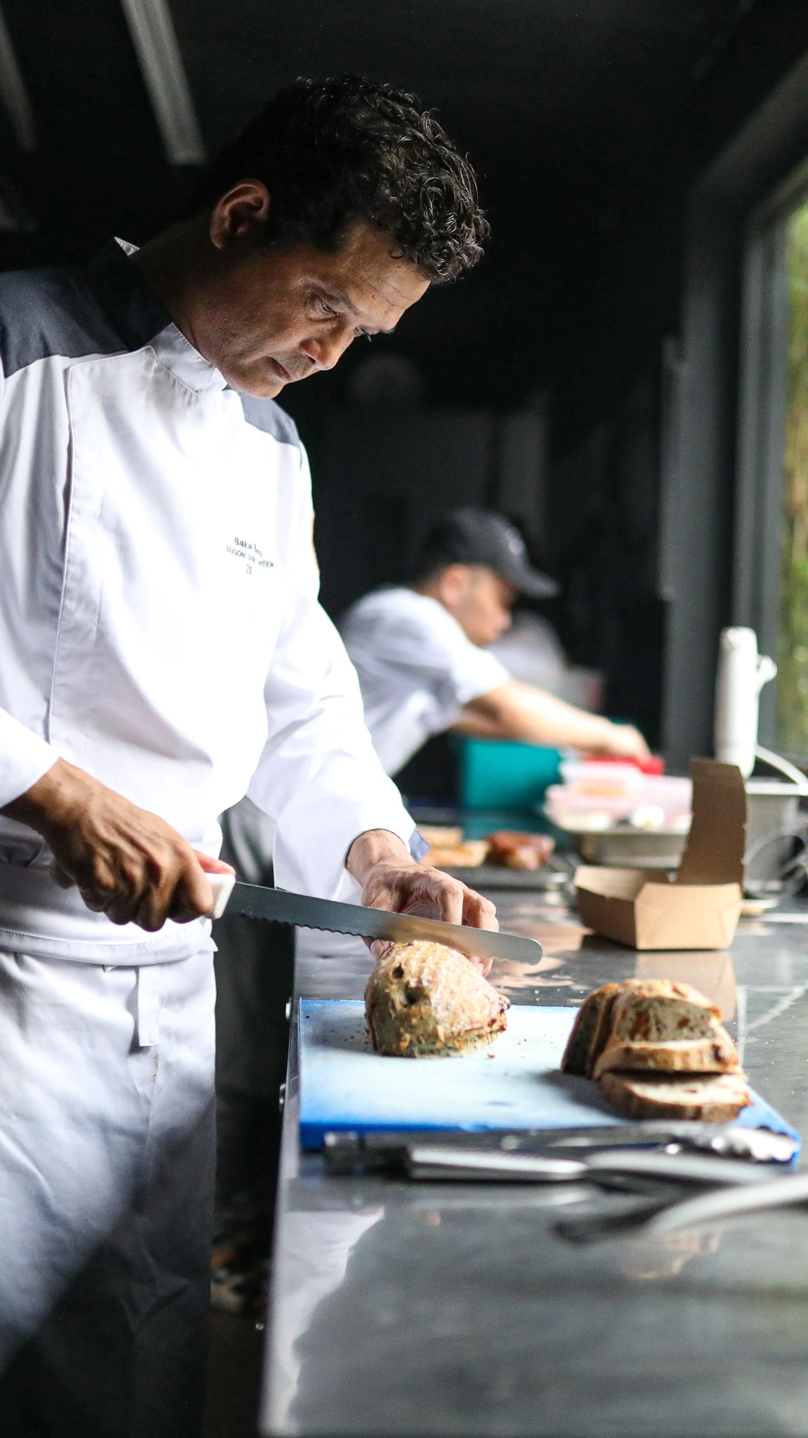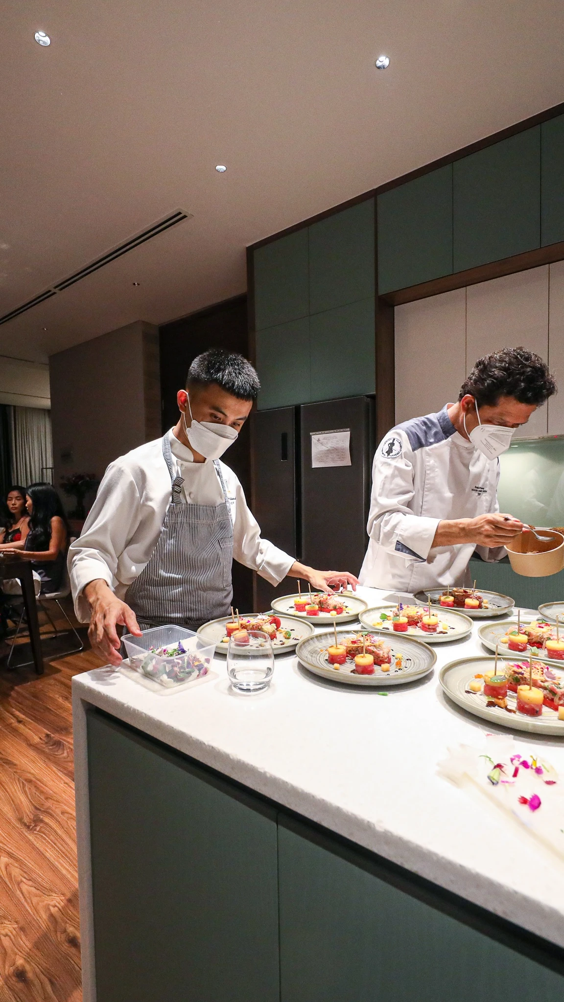 | Tôi và các nhân viên đang chuẩn bị bữa tiệc tại gia (catering service) cho nhóm khách khoảng 8 người. Dù TP.HCM đã cho phép hàng quán phục vụ tại chỗ, nhiều thực khách vẫn chọn tổ chức tiệc riêng tư vì lo ngại dịch bệnh. Nhà hàng cung cấp dịch vụ tiệc trọn gói tại nhà từ những ngày đầu mở cửa. Mùa dịch, catering service lại càng được ưa chuộng hơn vì tính riêng tư, an toàn. |