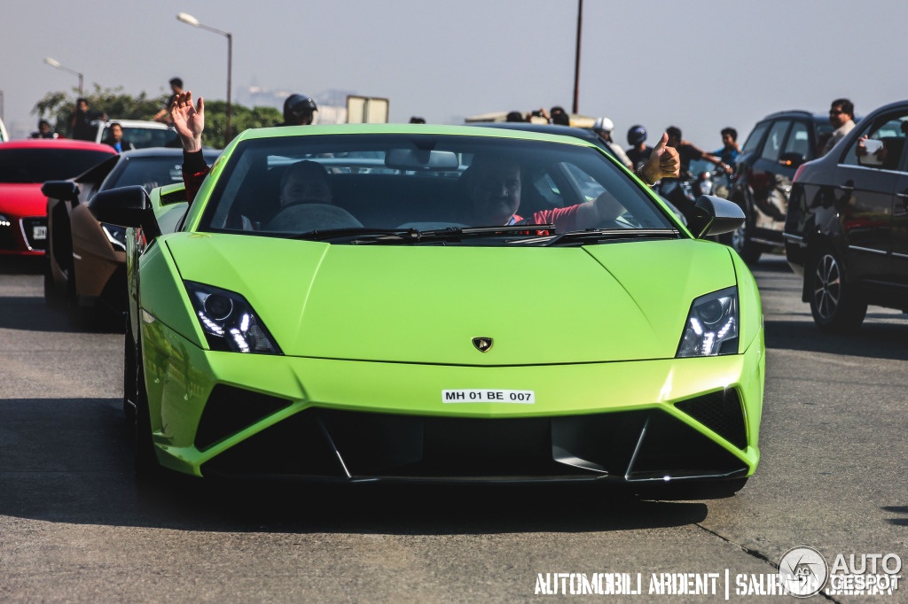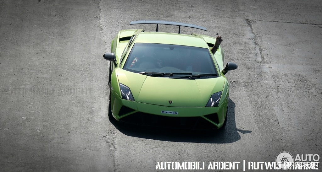 | Nổi bật nhất trong 4 siêu xe này là chiếc Lamborghini Gallardo LP570-4 Superleggera màu xanh cốm. |