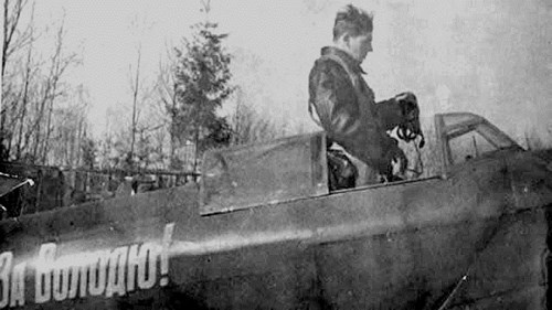 | Vasily Stalin trên khoang lái máy bay Yak-9 trong thời kỳ chiến tranh. |