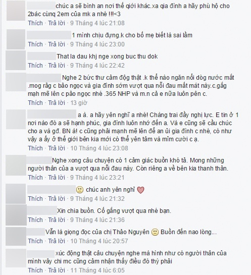Lá thư cảm động của Minh Vy chạm đến trái tim của thính giả nghe đài. Sau khi chương trình phát sóng, câu chuyện cũng được cộng đồng mạng lan truyền. Nhiều người không thể kìm được nước mắt trước tình yêu cảm động của em gái dành cho anh trai. Với họ, những lời chia sẻ, động viên như phần nào xoa dịu nỗi đau mất mát người thân của gia đình Minh Vy.
