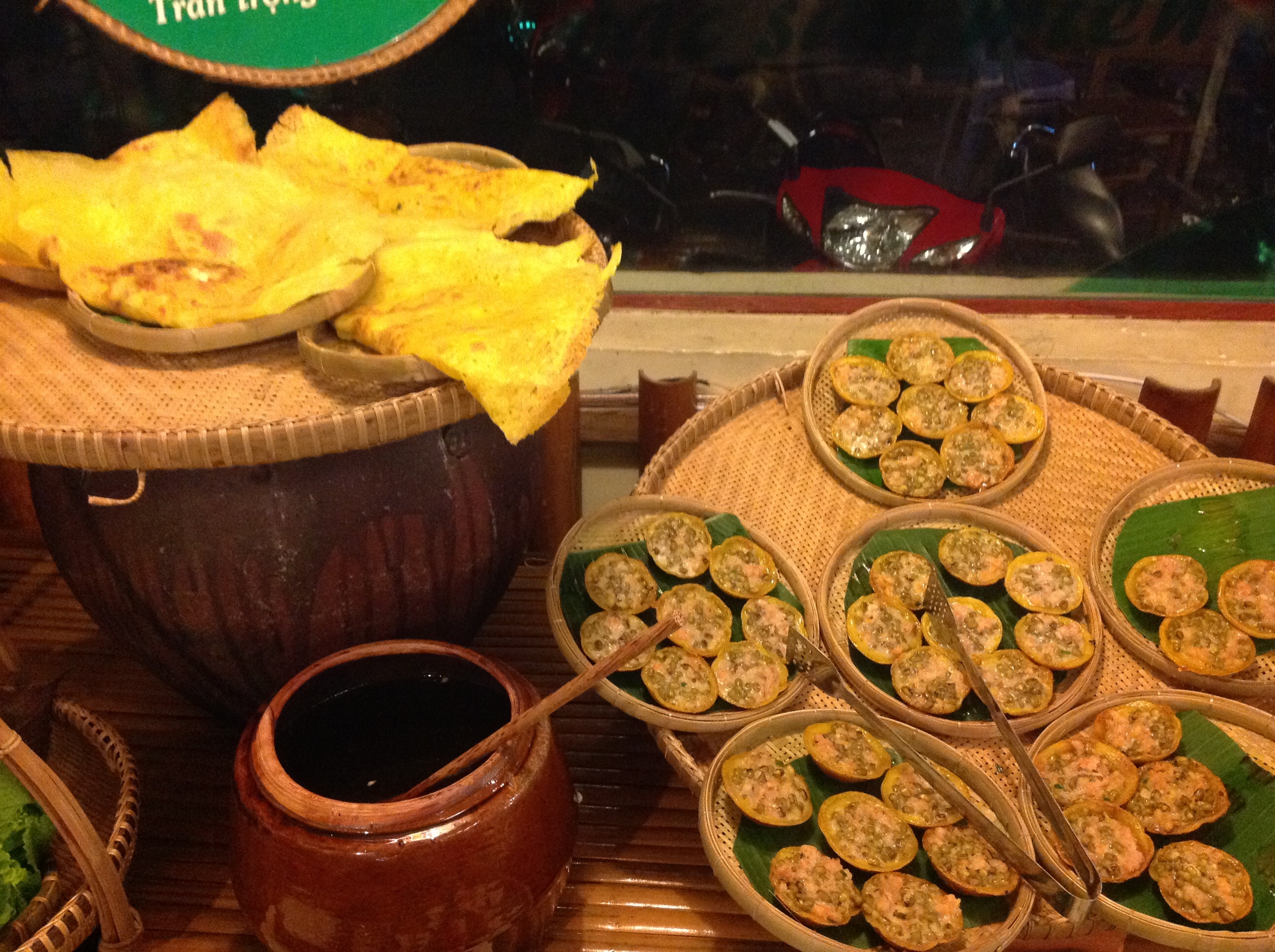 Trong những ngày mưa lạnh buốt, thật khó cưỡng lại khi bắt gặp hình ảnh chiếc bánh xèo nóng giòn, vàng ươm đi kèm với rau sống tươi xanh cùng chén nước chấm đậm đà. Bánh xèo từ lâu đã là món ăn thân thuộc với người dân Nam bộ, nhưng phần lớn thực khách “nghiện” bánh xèo thường chỉ nghĩ đến các loại bánh xèo truyền thống với nhân là tôm, thịt và giá đỗ, được rán màu vàng, đúc thành hình tròn hoặc gấp lại thành hình bán nguyệt.