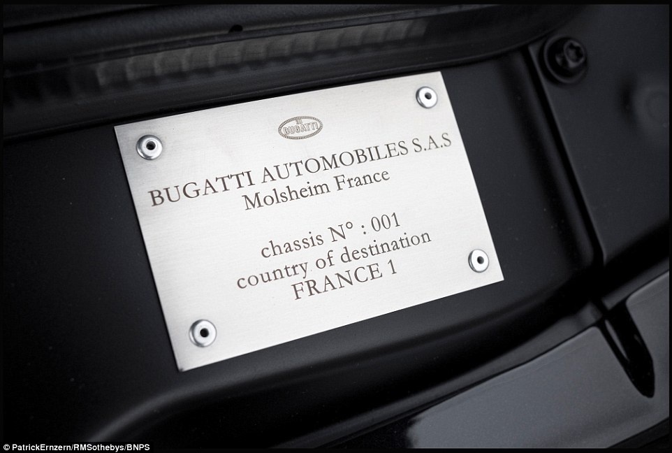 Chiếc Veyron này mang số khung 001. Ngoại thất nổi bật với hai màu đen và đỏ, bên trong nội thất da màu be. Xe mới chạy 1.287 km, vì vậy gần như mới hoàn toàn.
