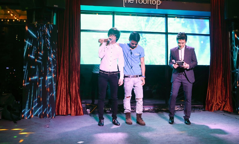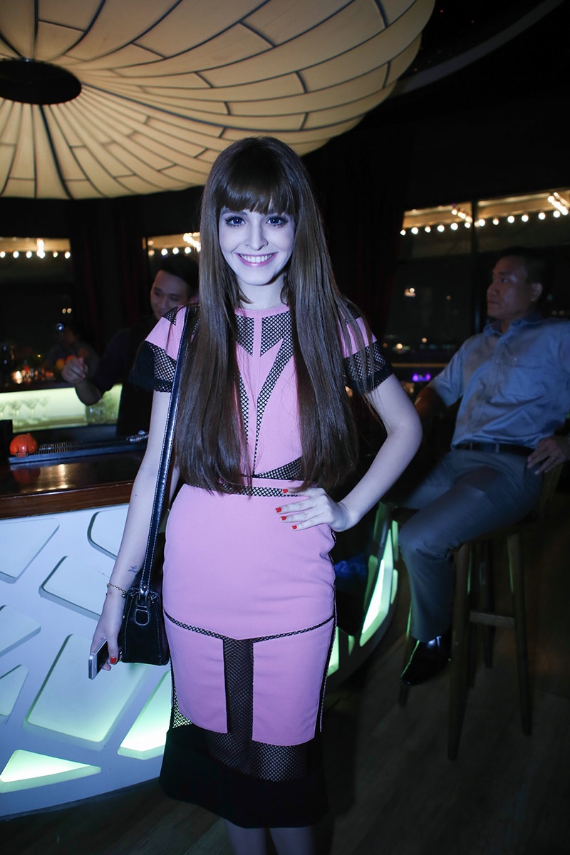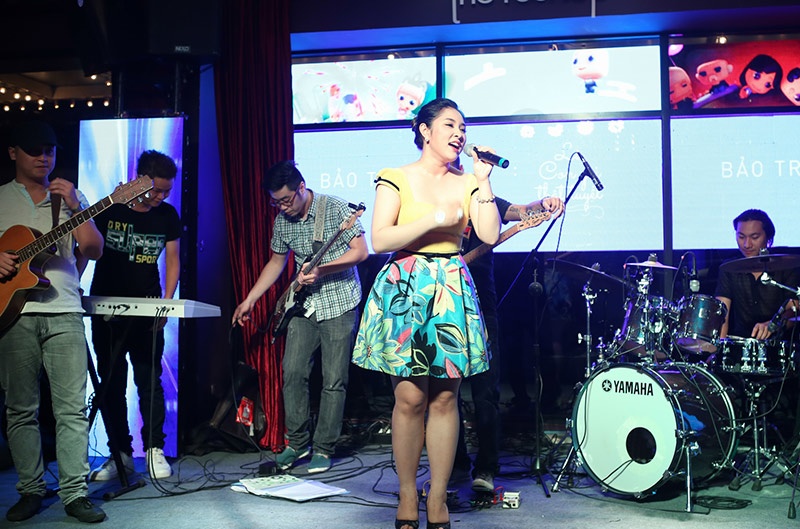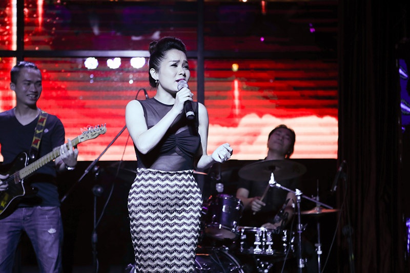 | Đoàn Thúy Trang thể hiện ca khúc Tình yêu màu nắng góp vui cho không khí của buổi tiệc. |