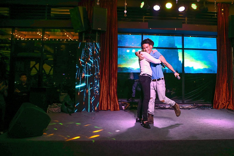 | Cả hai không ngại ôm chầm lấy nhau để thể hiện tình cảm anh em thân thiết, gạt bỏ những mâu thuẫn trước kia. |
