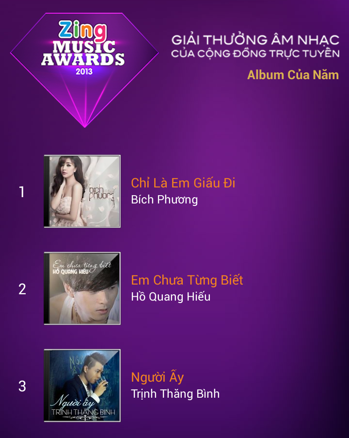 Kết quả top 3 MV của năm. |