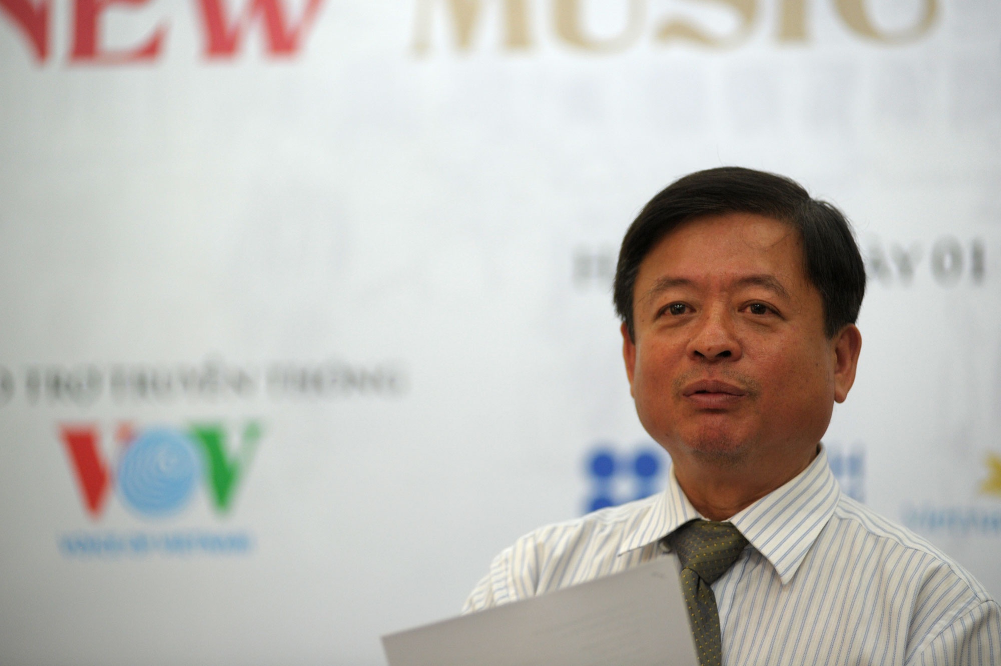 | Nhạc sĩ Đỗ Hồng Quân - trưởng ban tổ chức Lễ hội âm nhạc mới Á - Âu - phát biểu tại buổi họp báo. |