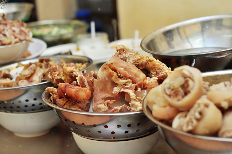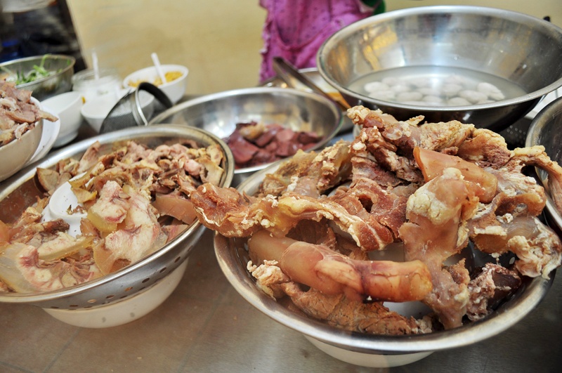 Tên gọi bún bò cay thôi nhưng món của quán rất phong phú - gân, đuôi, nạm, tiết, lưỡi, bò viên, bò kho… đủ cả. Nếu là người phàm ăn, nhìn những khay đồ ăn đầy ắp, ngon lành ấy bạn sẽ khó cầm lòng.