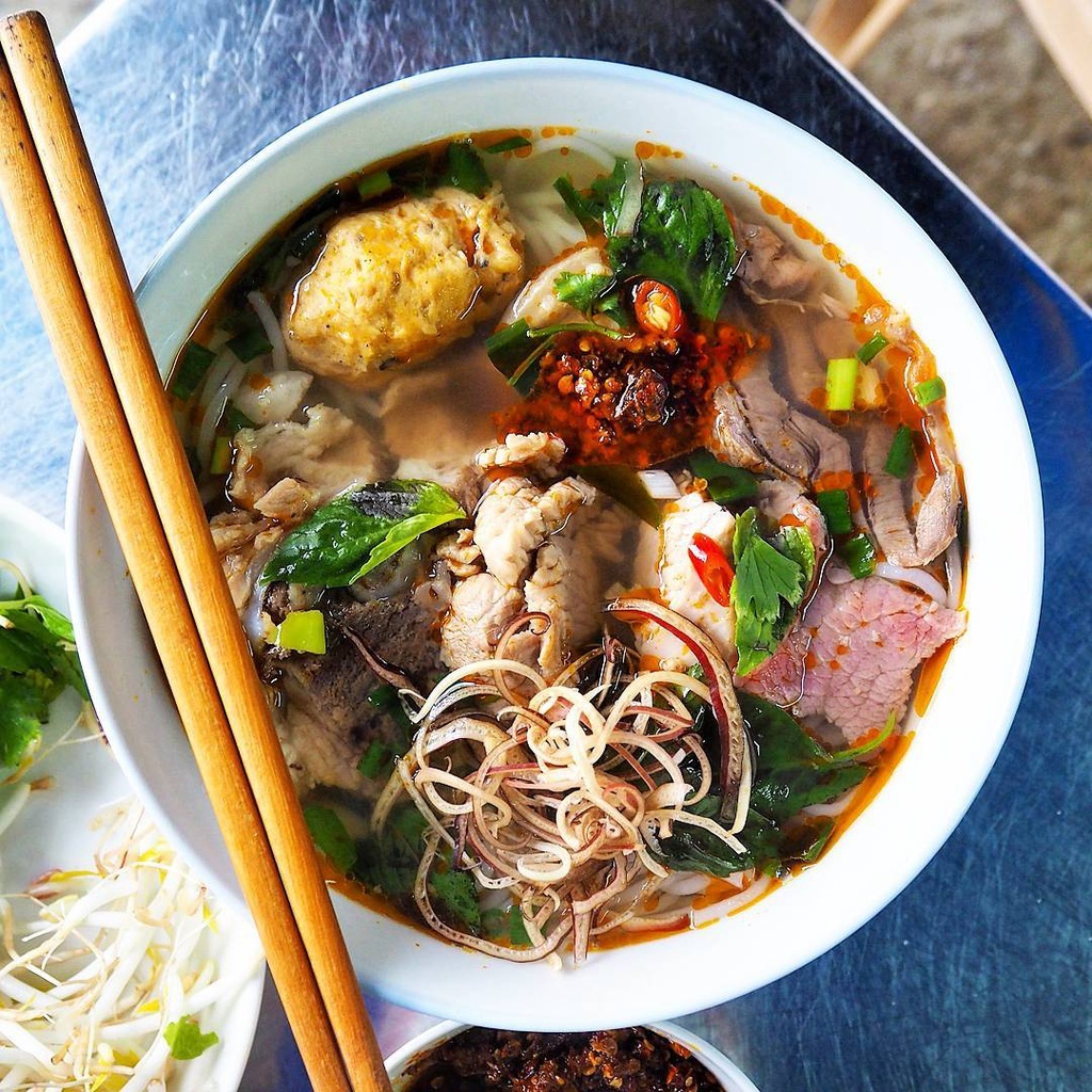 Bún bò giò heo là đặc sản hút khách bậc nhất ở cố đô Huế. Thực khách khắp nơi còn gọi đây là bún bò Huế để chỉ xuất xứ của món ăn. Bún bò Huế chuẩn vị phải được nấu từ bắp bò hoa và chân giò heo phía trước thì thịt mới mềm, ngọt và ít mỡ. Đặc biệt, ruốc nấu bún bò phải là mắm ruốc Huế mới tạo được hương vị tinh tế đúng điệu. Ảnh: Pyzamadeinpoland. |