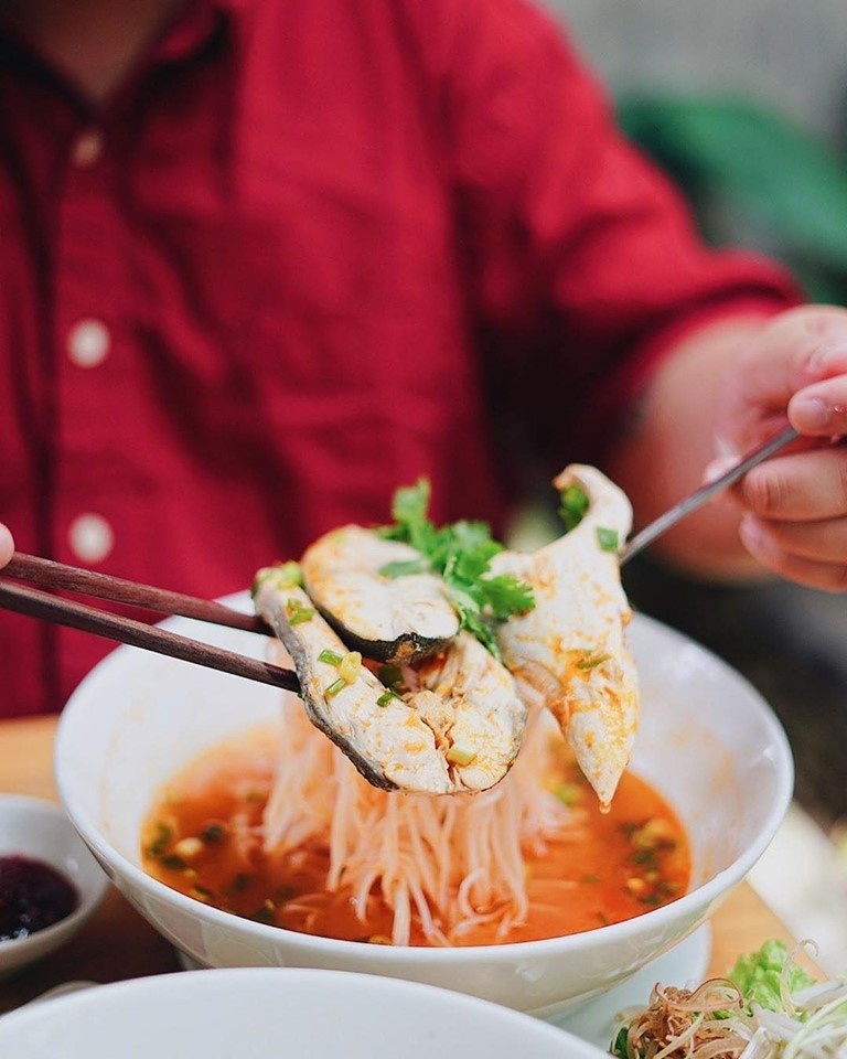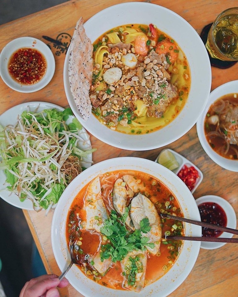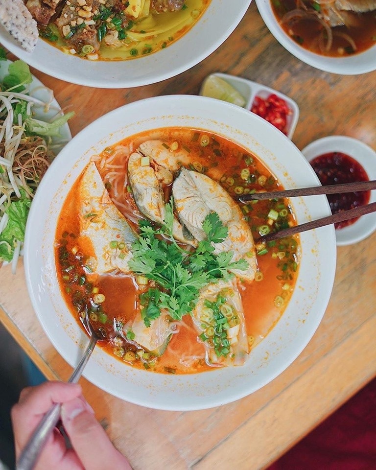 | Bún cá cam - 26/16A Đinh Tiên Hoàng, quận Bình Thạnh: Địa chỉ này hút khách bởi các món ăn hấp dẫn, mang hương vị miền Trung. Rau tươi, các loại gia vị được bày biện gọn gàng, sạch sẽ. Không gian thoáng mát cũng là điểm cộng làm nhiều thực khách lựa chọn mỗi khi muốn trải nghiệm bún bò, mì Quảng và đặc biệt là bún cá cam. Ảnh: Foodholicvn. |