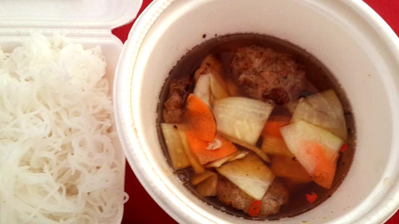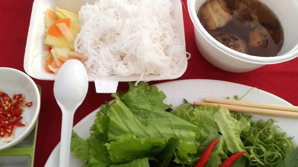 | Rau và bún tươi tăng thêm vị ngon cùng nước chấm mặn truyền thống. |