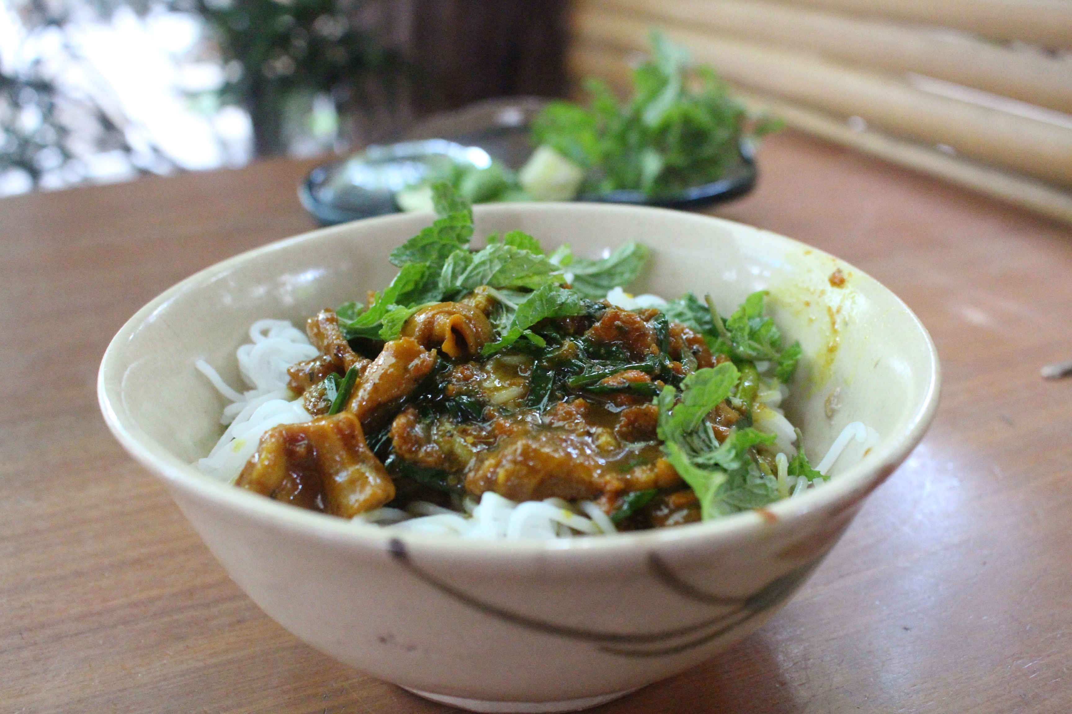 Món được yêu thích thứ hai tại quán là bún bò Đà Nẵng. |