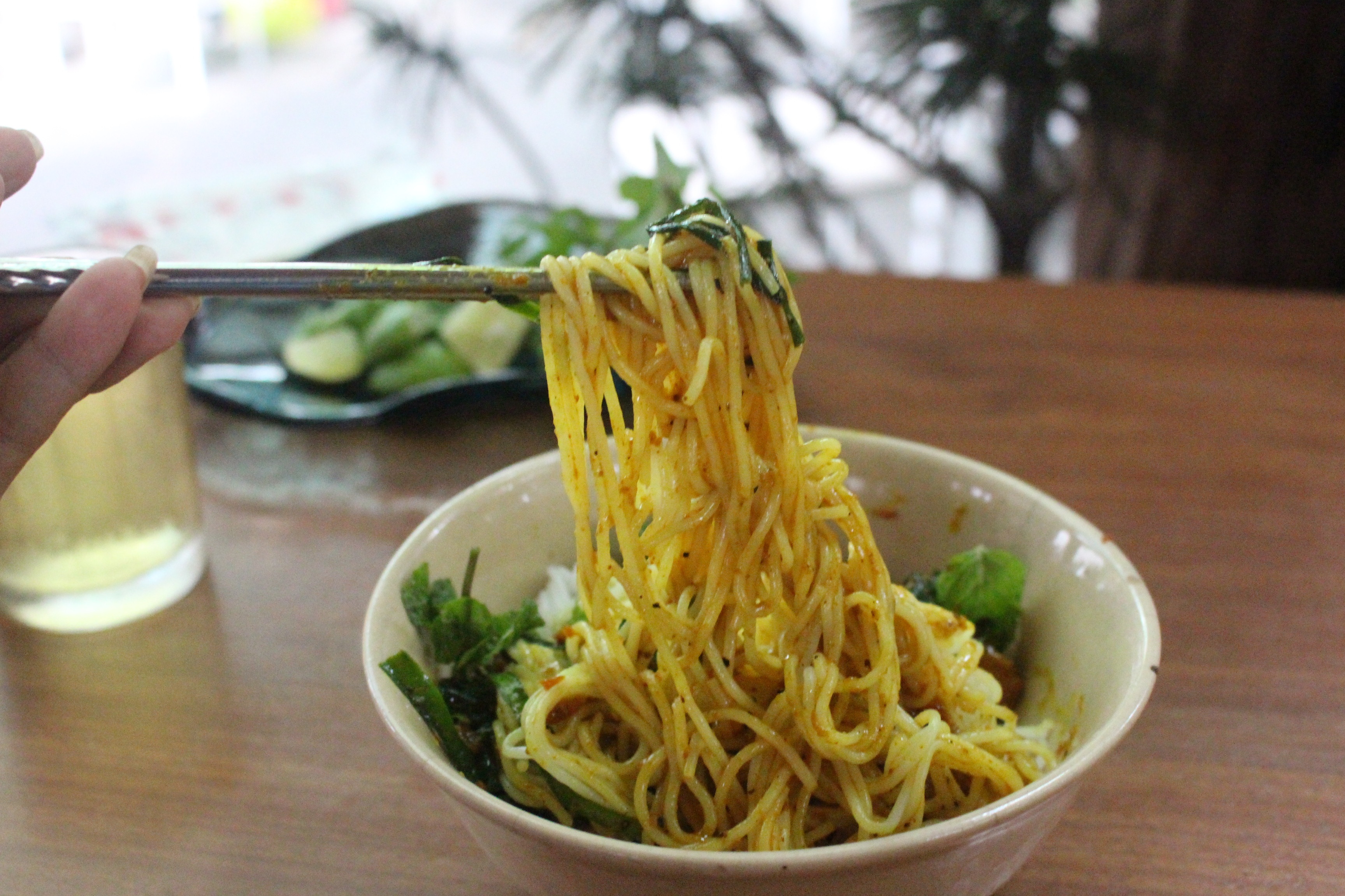 Được yêu thích nhất là bún lòng xào nghệ và bún bò. |
