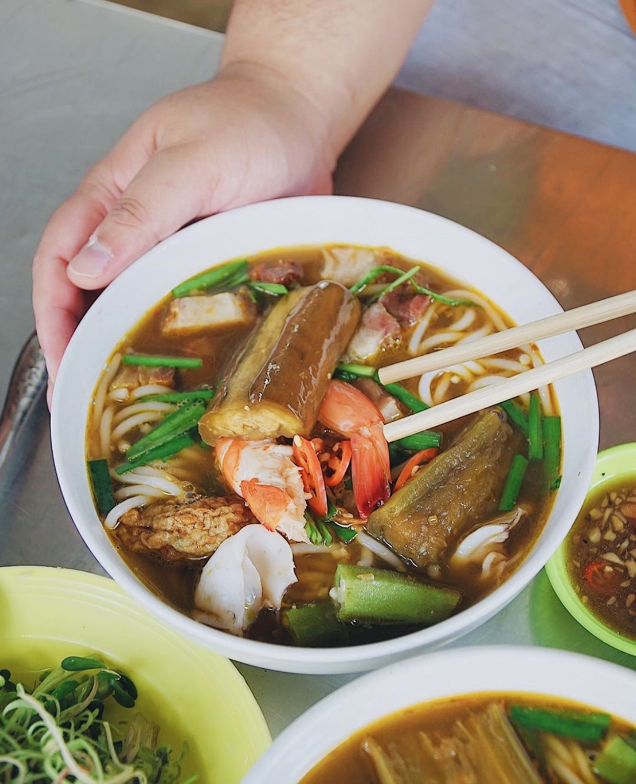 Du khách có dịp đến miền Tây không thể bỏ lỡ cơ hội trải nghiệm bún mắm. Món bún nổi bật với phần nước dùng đượm hương từ mắm cá linh hoặc cá sặc. Thịt heo quay, tôm, mực hay chả cá cũng được sử dụng trong thành phần. Bún mắm ăn kèm rau muống chẻ, cọng bông súng, rau đắng, bắp chuối... tạo nên phiên bản ẩm thực dân dã, lạ vị. Ảnh: Foodholicvn, Hukha.Foodaholic. |