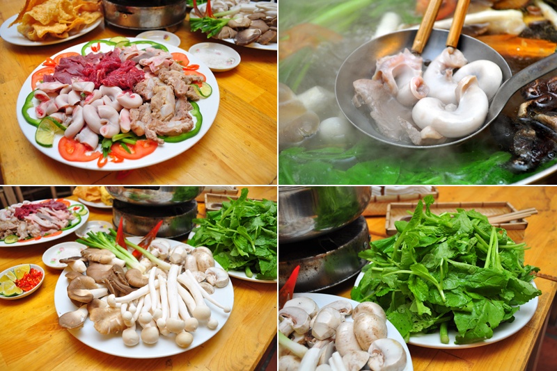 Lẩu nấm ngũ vị trông đã mắt với đủ tim, tràng, sườn sụn, bắp bò, dạ dày.