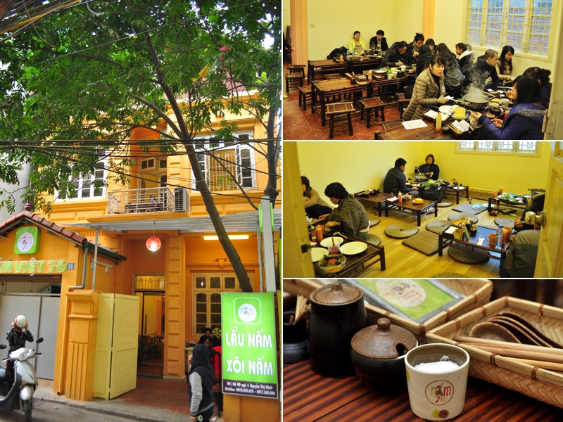 Phố Nguyễn Thị Định, Trung Hòa hay Đỗ Quang là tụ điểm của nhiều nhà hàng lịch sự. Tuy nhiên, tiệm bình dân có món ngon đặc sắc hoặc quán quà vặt thú vị thì chưa nhiều. Vì thế mà một nơi như quán Nấm Việt 76, dù chỉ nằm khuất trong ngõ và mới mở, đã đắt khách ngay. Quán này thực chất đã có tên tuổi, nổi tiếng ở phố Lò Đúc. Đây là cơ sở mới nhưng sớm “hot”, tầm trưa và tối các nhóm khách trẻ cùng dân công sở kéo tới rất đông.
