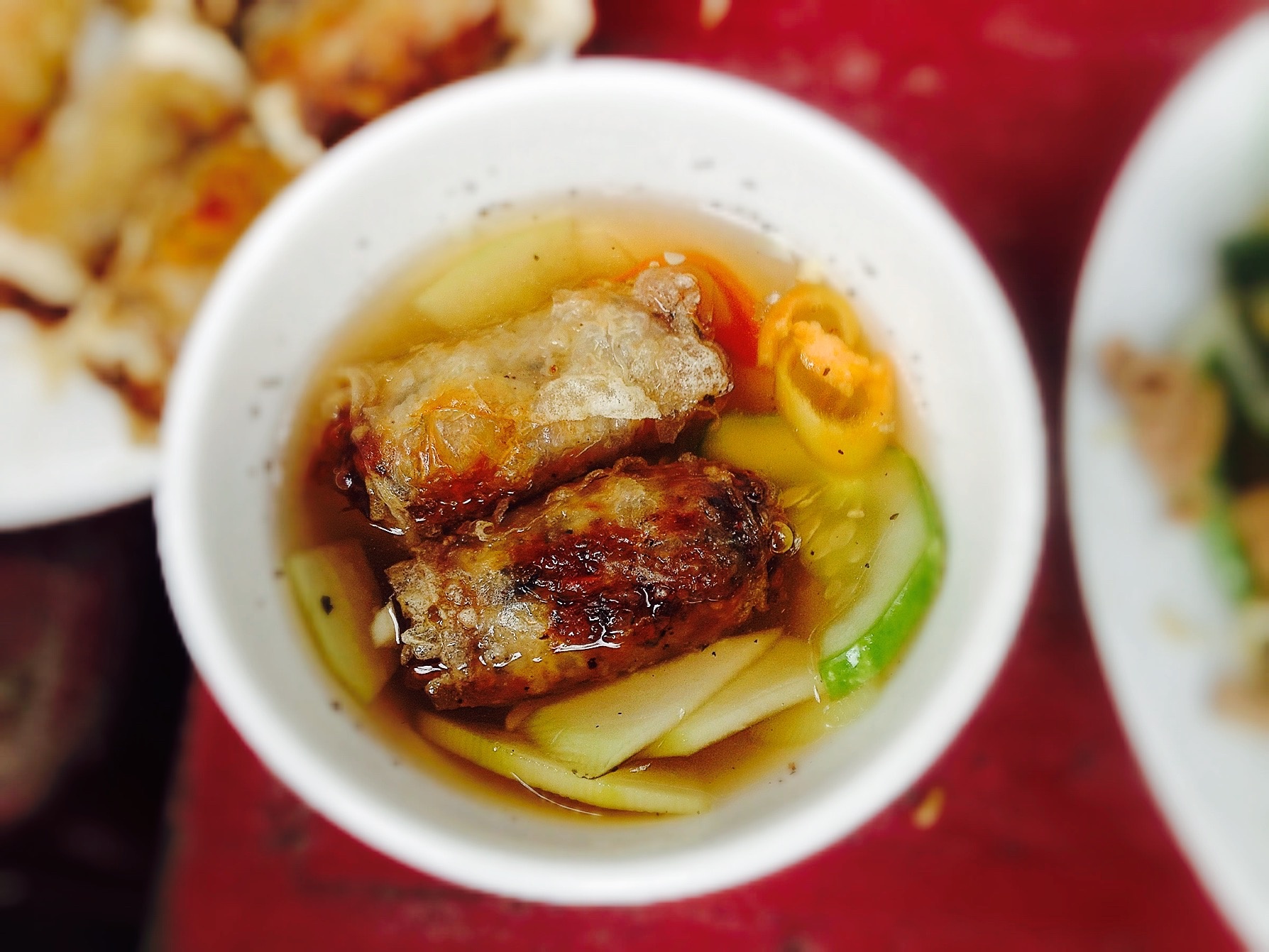 Nước chấm pha vừa miệng. Món bún nem cua ở đây đã làm nhiều người lần đầu tiên ăn thử phải bất ngờ về độ ngon rẻ.