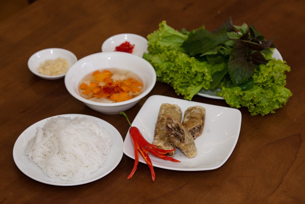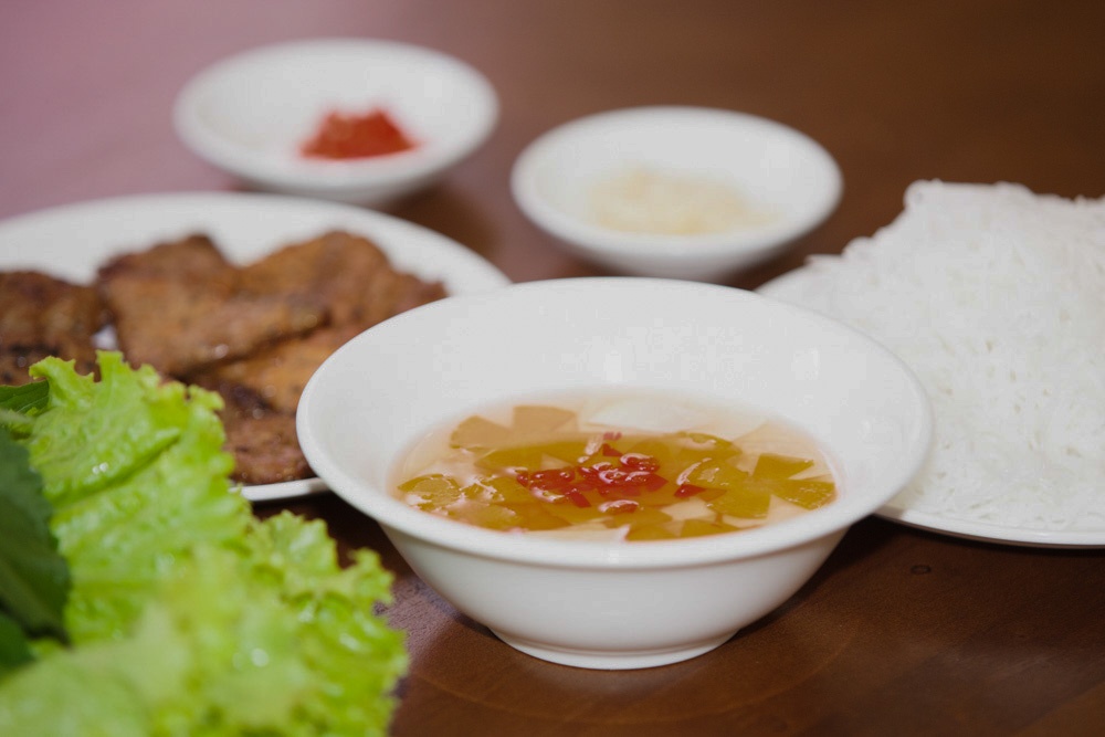 Song đồ ăn ngon không chỉ ở mắt của người nhìn, khi nhấm nháp, mới phát hiện chả và nem cũng có nhiều điểm khiến người ta lưu luyến. Phần chả được tẩm ướp, nướng đậm đà, vừa miệng. Nước mắm ăn kèm nhấn nhá nước dùng thịt heo, nên có độ mềm, béo, đã miệng.