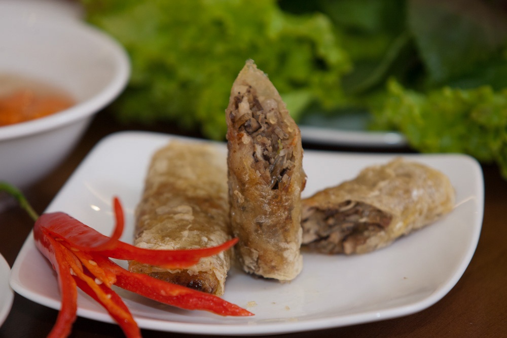 Được kết hợp với hơn 10 loại nguyên liệu khác nhau, nem của quán đậm đà, thơm ngọt với nấm hương, tôm tươi cắt bản lớn, gia vị gia giảm vừa miệng. Phần nem khiến thực khách chỉ muốn ăn thêm nhiều lần nữa để kéo dài hơn cảm giác giòn tan, beo béo của phần vỏ, vị dai, mềm, sần sật của phần nhân.