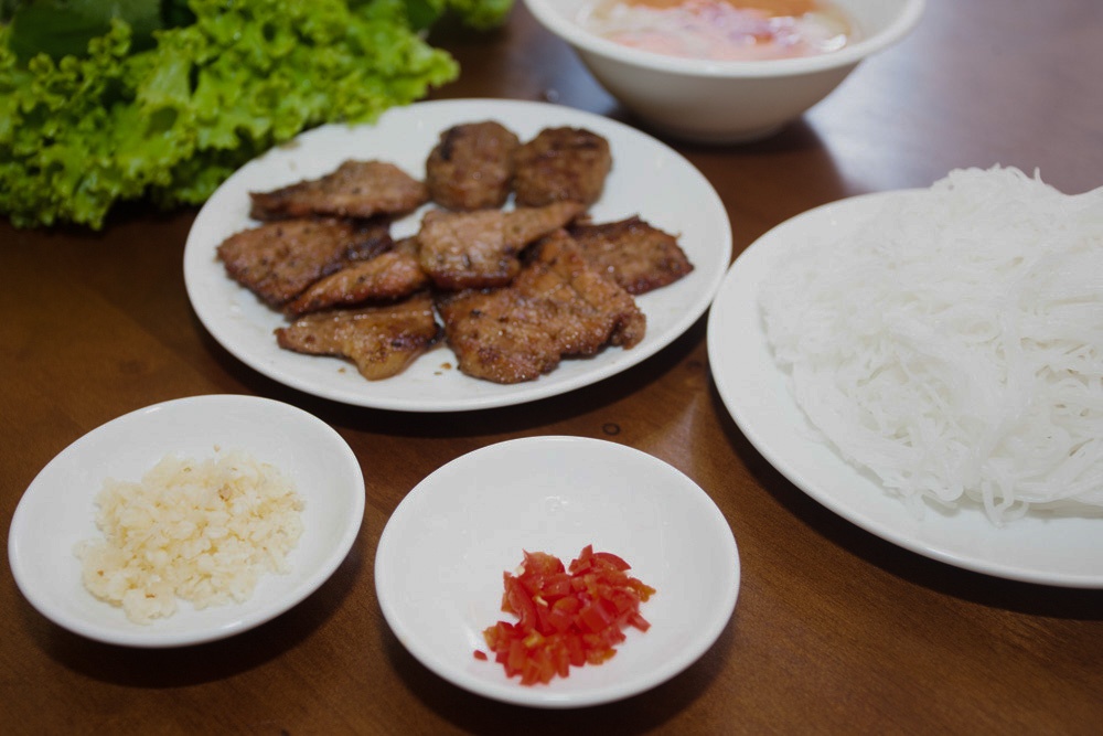 “Đắt xắt ra miếng”, tuyên ngôn của người bạn khiến tôi càng tò mò. Về cơ bản, hai món bún chủ đạo của quán không quá khác biệt. Nghĩa là cũng chỉ gói gọn trong hai loại thịt nướng, phần nem giòn, rau sống đi kèm.