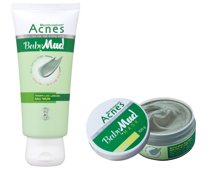 Bùn non rửa mặt dưỡng sáng Acnes Baby Mud và mặt nạ bùn non dưỡng sáng Acnes Baby Mud Mask đều đặc chế từ thành phần tự nhiên, hấp thu và loại bỏ các tác nhân gây hại, cho làn da thanh khiết, sáng mịn, đồng thời giúp se lỗ chân lông và ngăn ngừa mụn quay trở lại.