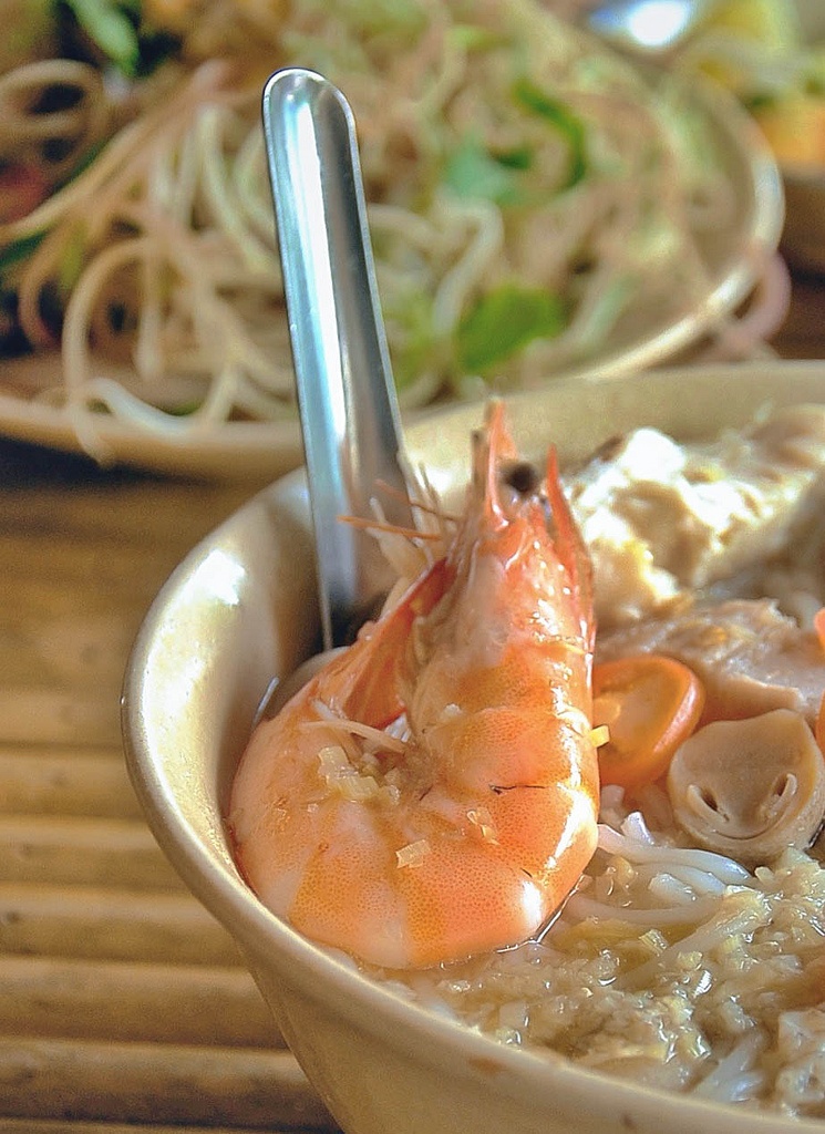 Quán chuyên phục phục vụ những món mang đậm phong vị của vùng đất này như cháo cua đồng, cháo cá, bánh hỏi thịt nướng… song được yêu thích nhất trong những ngày gần đây là món bún nước lèo Sóc Trăng.
