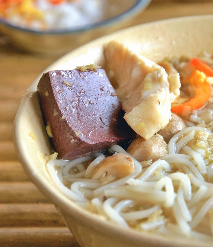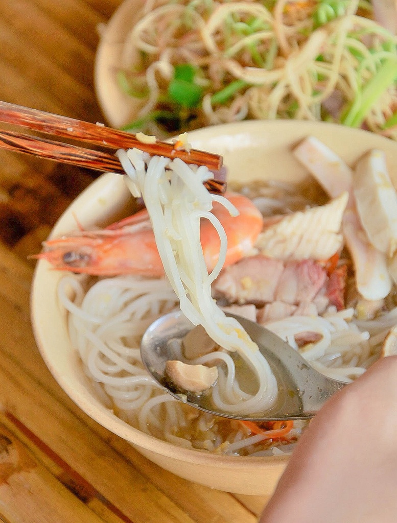 Góp phần vào thành công của món ăn là loại bún được làm từ loại gạo dẻo, ngâm nước qua đêm rồi xay trong cối đá. |