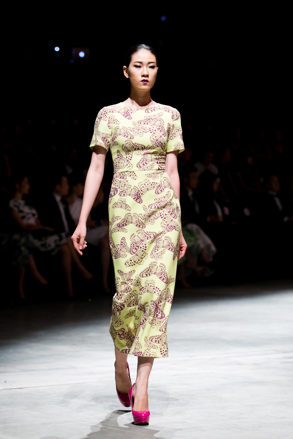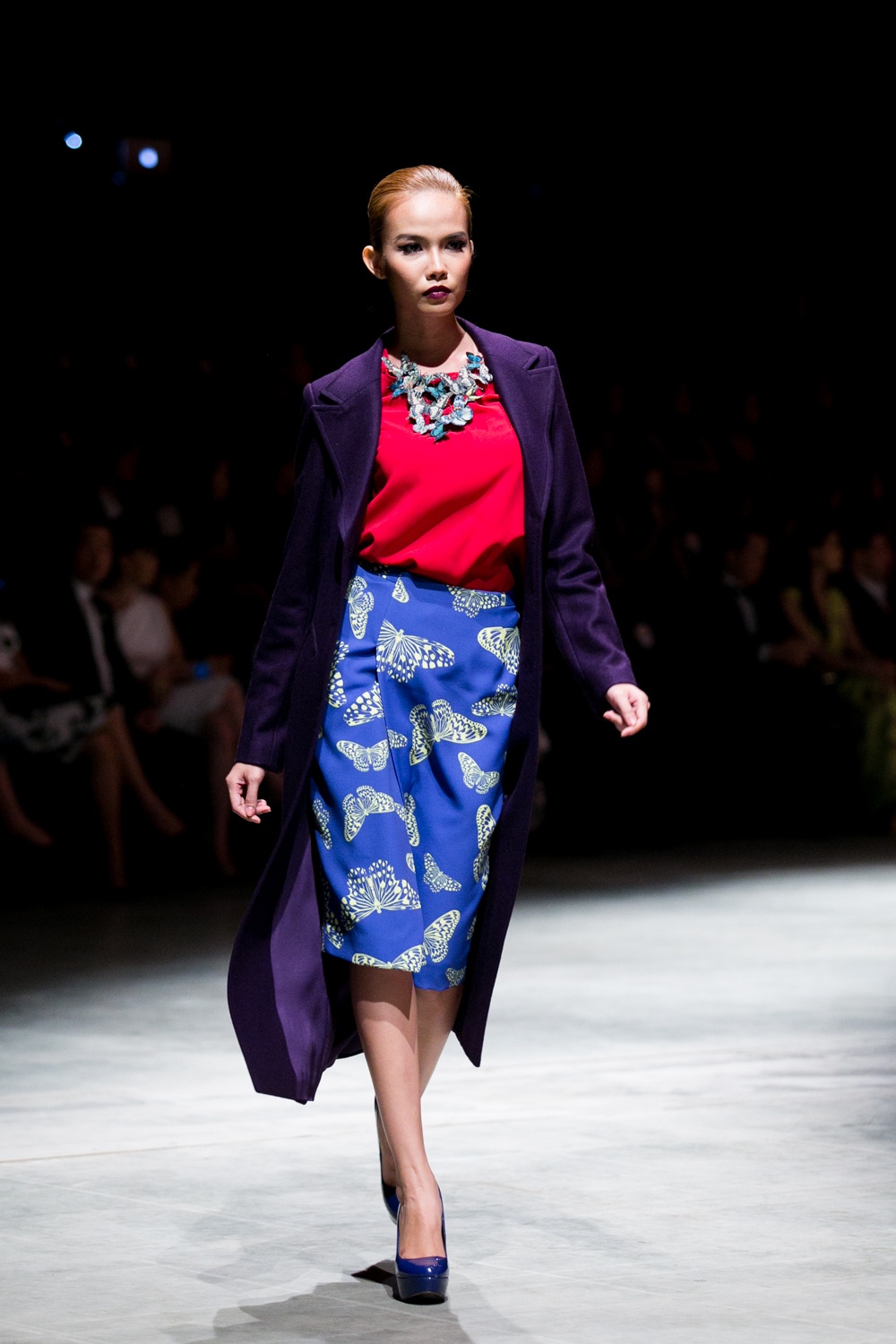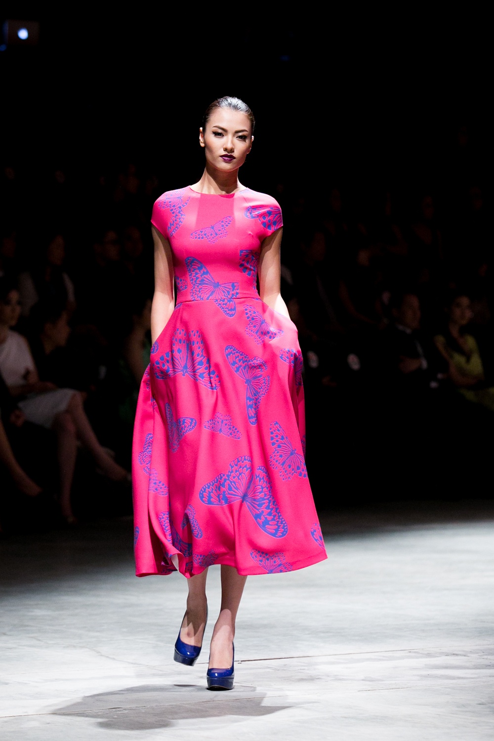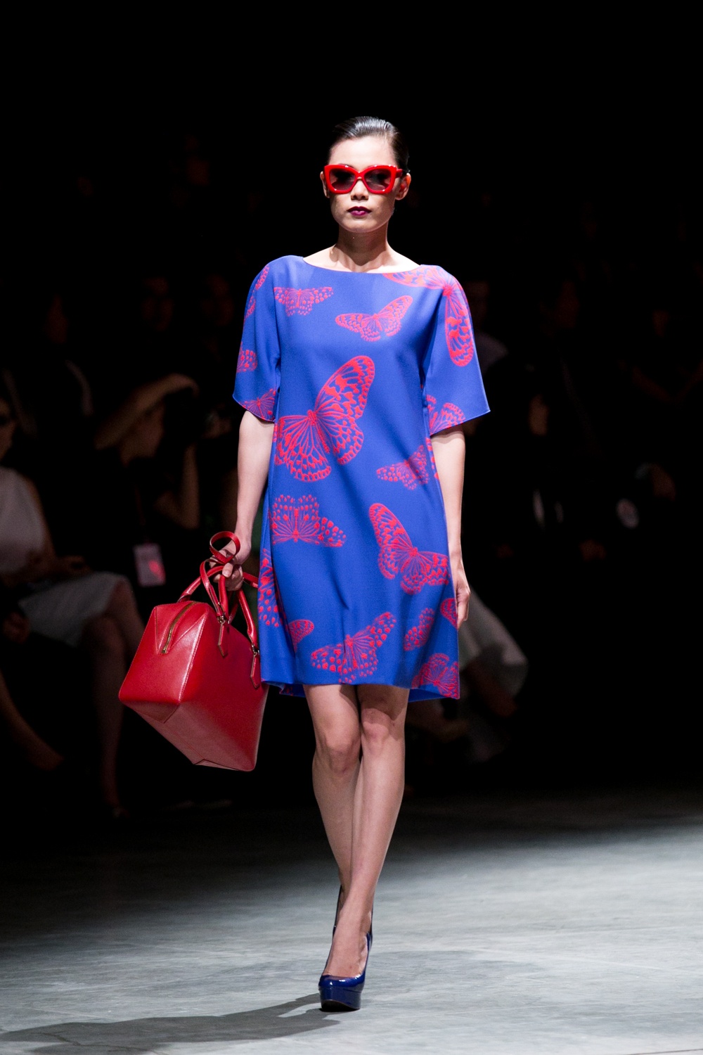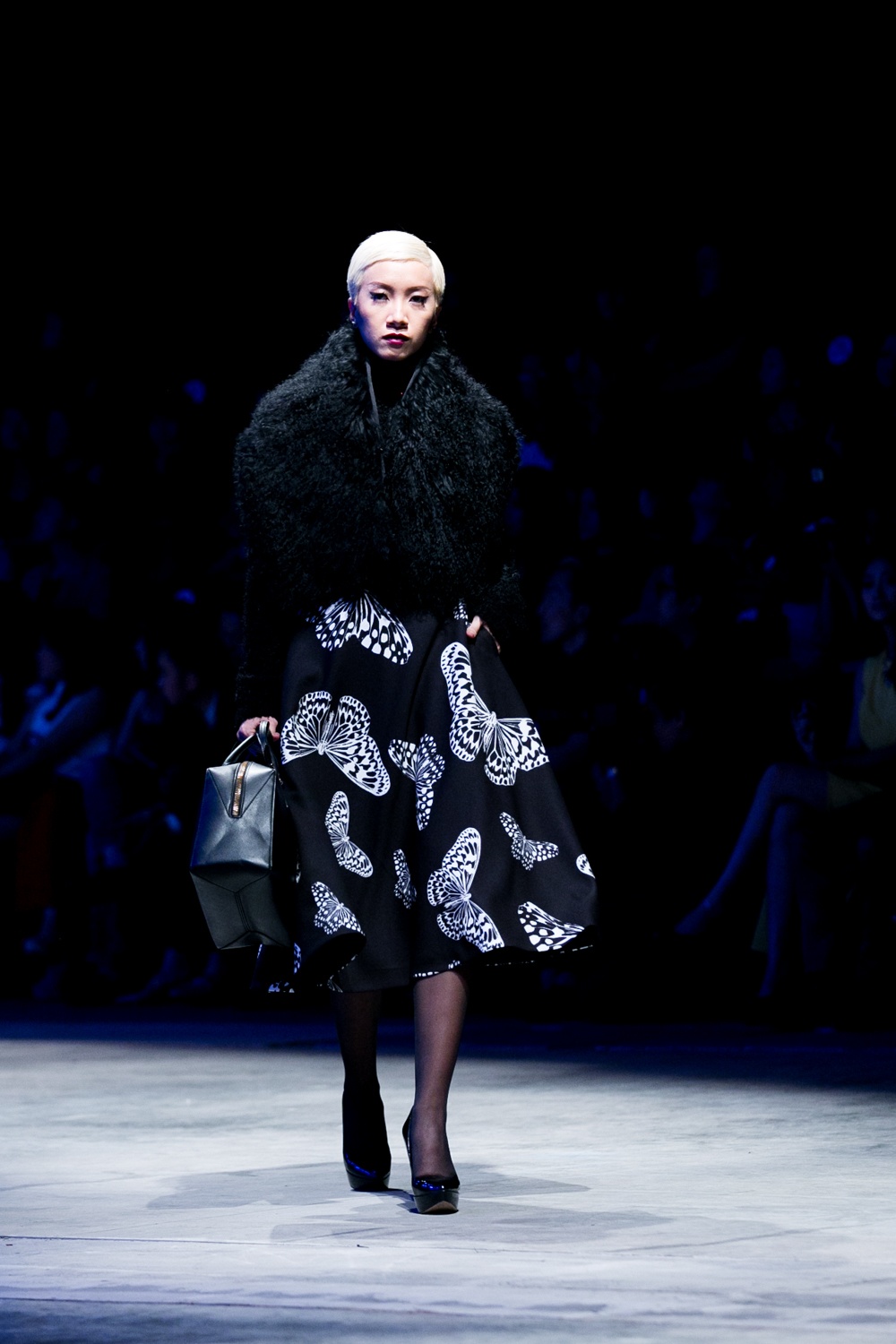 BST có sắc màu tươi trẻ được giới thiệu ở phần đầu khá ấn tượng với những mẫu váy thanh thoát, họa tiết bướm được xếp đặt có ý tứ trên từng mẫu váy có sự linh hoạt về màu sắc, tạo sự hài hòa cho từng mẫu thiết kế. Ngoài ra, phụ kiện giày, mũ, túi xách góp phần tô điểm cho BST có hơi thở mùa thu đông phương Nam.